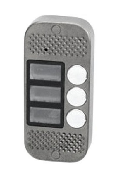 Вызывная панель видеодомофона JSB V083 БК серебро без камеры на 3 абонента, антивандальная, всепогодная, накладная. Аудиоканал на базе аудиопроцессора, ИК-подсветка. Подсветка обозначений абонентов. Данное исполнение подразумевает подключение к панели внешней видеокамеры, что позволяет осуществлять видеонаблюдение не только непосредственно перед вызывным устройством, а с любого удобного для пользователя ракурса. Встроенное реле управления электромагнитным и электромеханическим замком. Наличие дополнительного светового и звукового оповещения в момент дистанционного открытия замка, позволяет избежать повторных "ложных" вызовов, показывая посетителю, что дверь открыта. Подходит для установки в офисных помещениях и жилых домах. Для питания подсветки информационных окошек требуется дополнительный источник питания 12 В. Предназначена для работы с любыми 4-х проводными мониторами типа Kocom, Kenwei, Commax, Polyvision,Quantum,Tantos и их аналогами. Температура эксплуатации от -30°C до +50°C. Габариты 60 х 135 х 22 мм. IP52.
