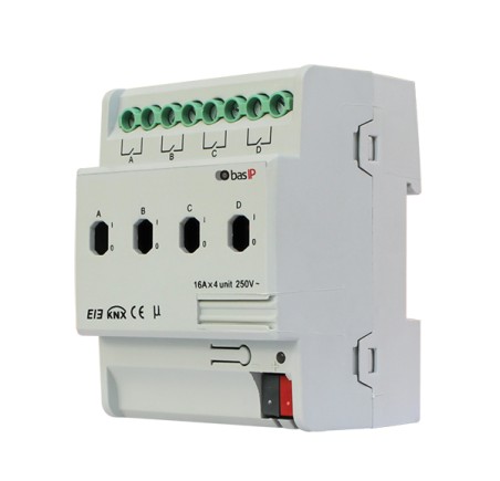 Актуатор на 4 канала Монтаж на DIN рейку Принудительное управление и функции безопасности Реакция на пороговую функцию Режим ручного переключения Управление клапанами и приводами Функция освещения лестницы с настраиваемым временем освещения Функция таймера |