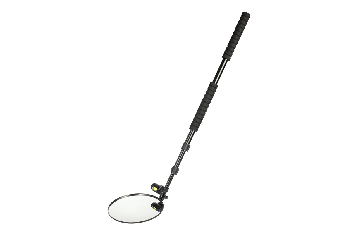 3. Использование досмотрового устройства не требует специальной подготовки персонала. Досмотр осуществляется при помощи зеркала, закрепленного на телескопической штанге. Подсветка зоны контроля осуществляется фонарем, закрепляемым на штанге. Устройство может применяться как на постоянных, так и временных постах контроля, а также мобильными нарядами.