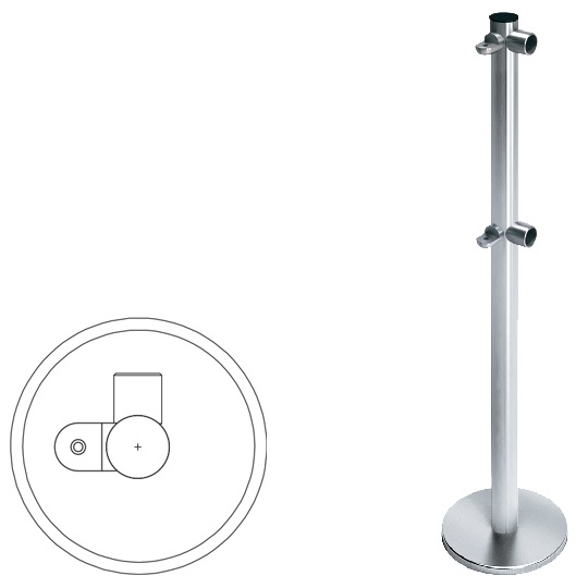 2 полупетли под поворотные створку или секцию, 2 муфты с крепежом Труба d 50 мм Н=1000 мм Стойка из шлифованной нерж.стали |