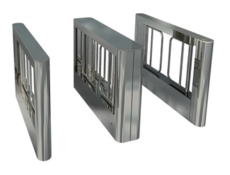 ВОСЕМЬ створок из нержавеющей стали установлены на валы стоек турникета ДВЕ тонкие боковые и ОДНА толстая центральная стойки турникета ОДИН встроенный картоприемник БЕЗ считывателя |