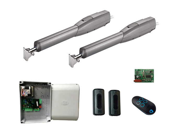 Привод ATS30AGM 230 В линейный, самоблокирующийся, со встроенными концевыми выключателями, для створок до 3 м. - 2 шт Комплект 8K01QA-001 блока управления и аксессуаров для распашных ворот (блок управления ZF1N, радиоуправление, фотоэлементы) - 1 шт |