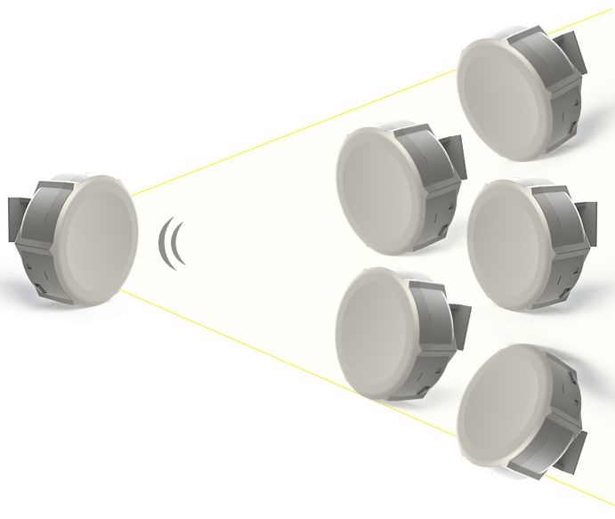 Комплектация состоит из пяти маршрутизаторов RBSXT-5HPnD и одного марки SXTG-5HPnD-SAr2. Рабочая частота – 5 ГГц. Имеется секторная интегрированная антенна 14dBi MIMO 2x2. На каждую точку доступа устанавливается операционная система RouterOS.