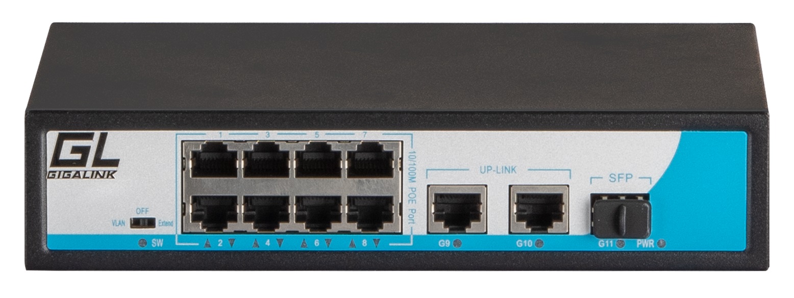 GIGALINK GL-SW-F005-08PS.r2 коммутатор неуправляемый, 8 PoE + 1 порт